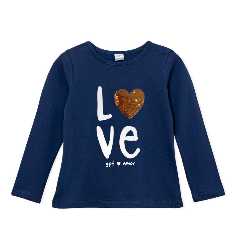 Remera con estampa "love" y lentejuelas